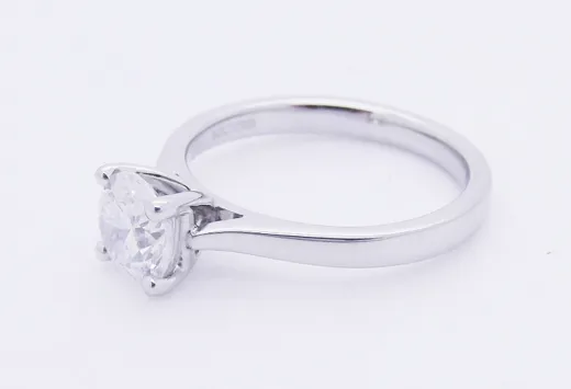 Diamond solitaire ring, round brilliant cut diamond, 1.08ct, EGL certificated, colour D, clarity SI2, set in platinum.