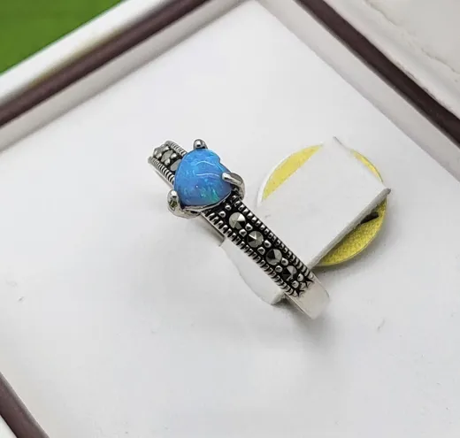 Sterling Silver Opal & Marcasite Ring, set with Blue Opal & marcasite