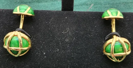 Tiffany & Co. Schlumberger 18K Yellow Gold Green Enamel Cufflinks. Crafted by the renowned designer Jean Schlumberger, stunning item in excellent condition, new retail price in excess of £6000.00.