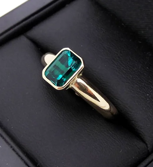 Pre-owned Emerald solitaire ring, approximately 7.5 x 5.5mm emerald, set in 18ct yellow gold.