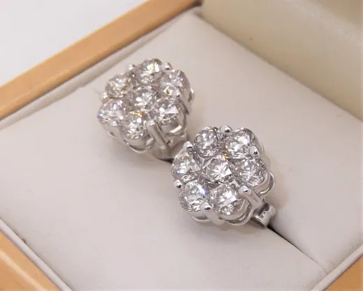 9ct gold diamond cluster stud earrings, set with round brilliant cut diamonds, 3.00ct in total, set in 9ct white gold, stunning